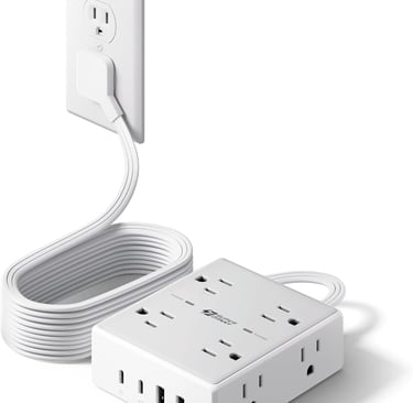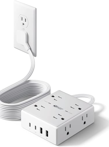The 10-foot cord gives you real flexibility in where you place it, the flat plug is a lifesaver behind tight spaces, and having 4 USB ports means I can ditch half my charging blocks. Surge protection is a nice bonus too — peace of mind for not much extra.